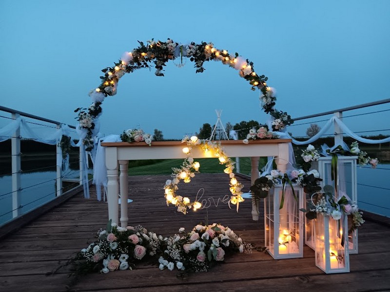 Realizziamo anche strutture con palloncini e fiori artificiali.